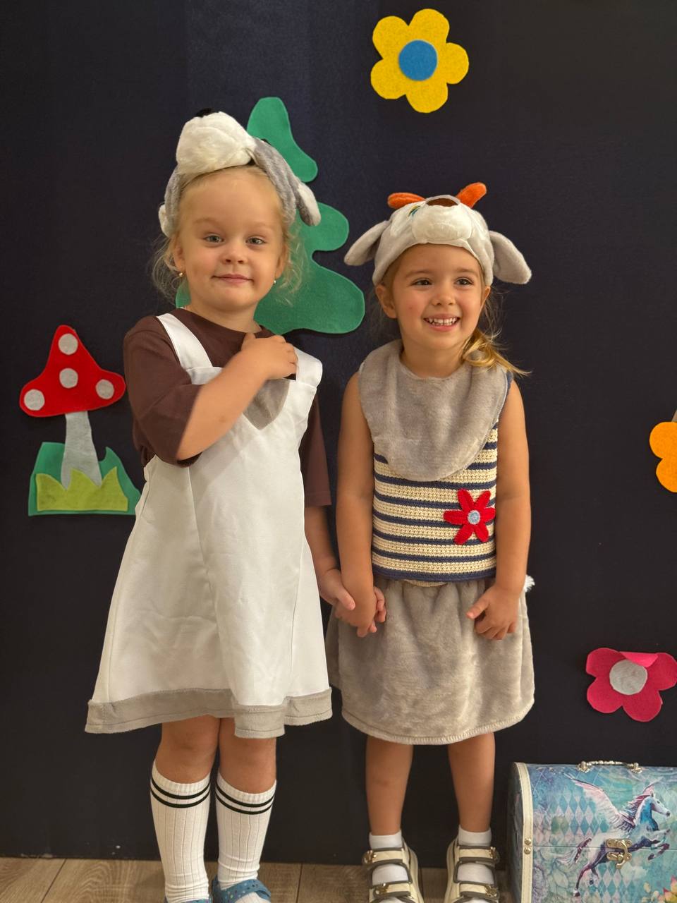 В викторине «Волшебные сказки» ребята угадывали героев и посмотрели кукольный спектакль «Красная Шапочка» на английском языке.