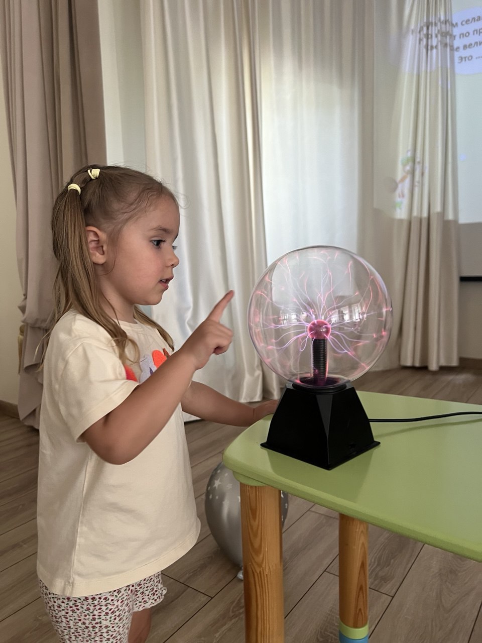 Не менее захватывающими стали опыты по физике и химии: мы узнали, откуда берётся электричество и даже создавали молнии внутри сферы, наблюдали «радугу в тарелке» из конфет и вырастили настоящие сверкающие кристаллы.