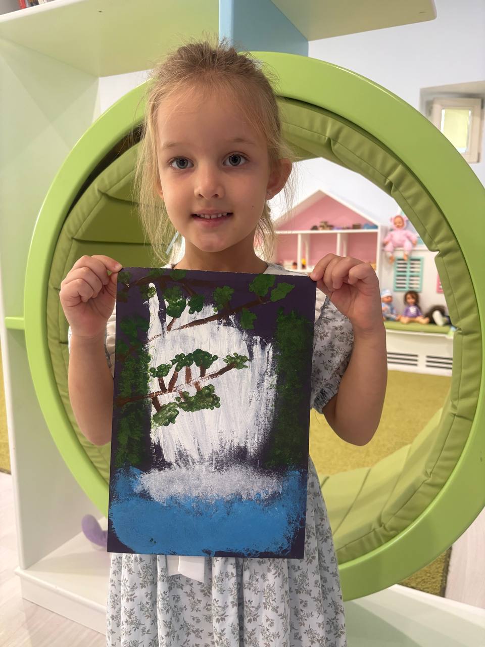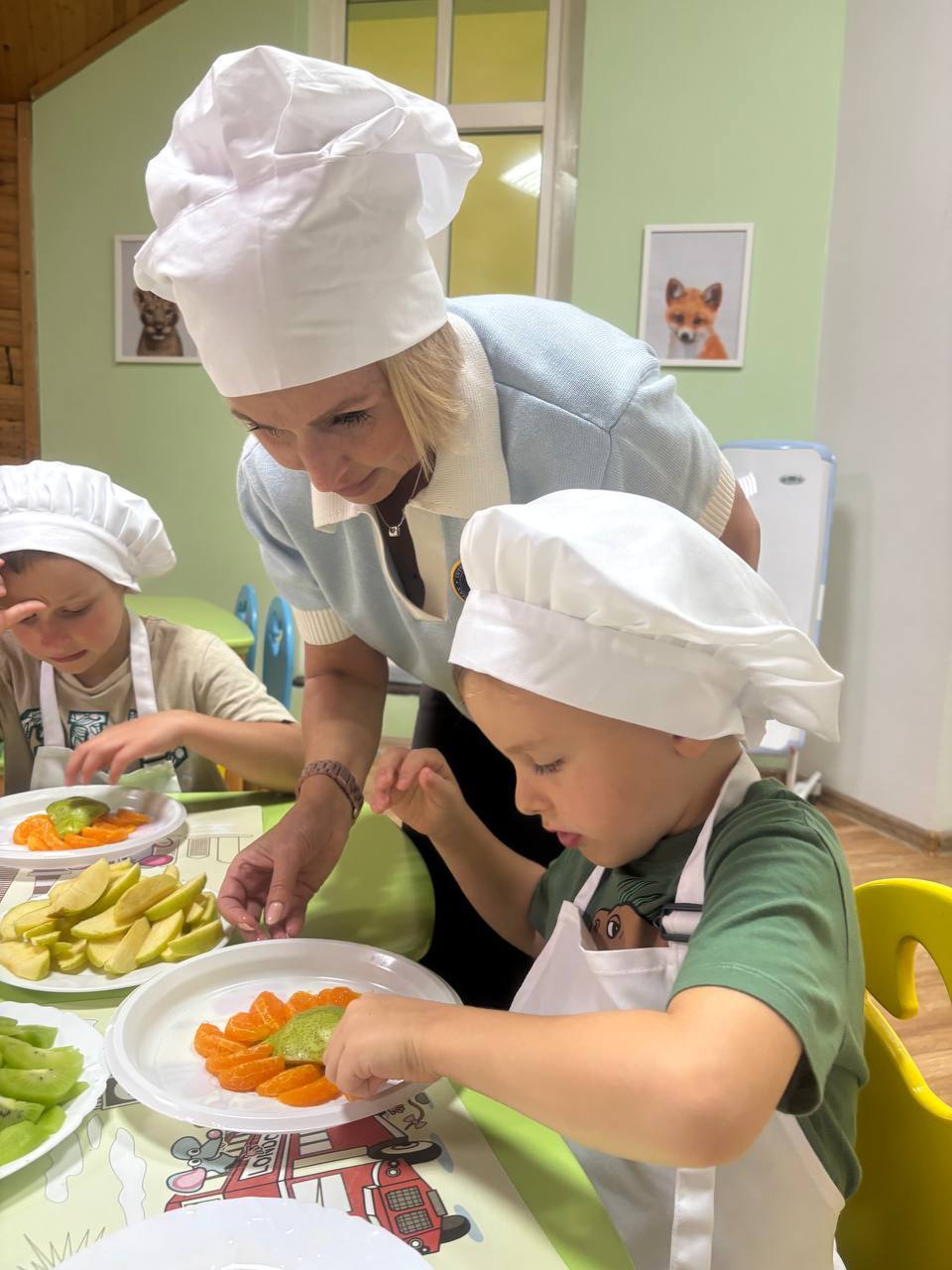 Не обошлось и без творчества с фруктами — дети делали очаровательных птичек из яблок и ягод, а во время «Недели Земли» рисовали величественный водопад Виктория в необычной технике.