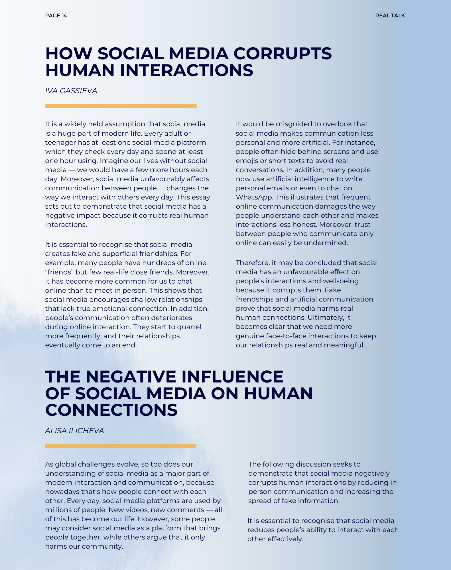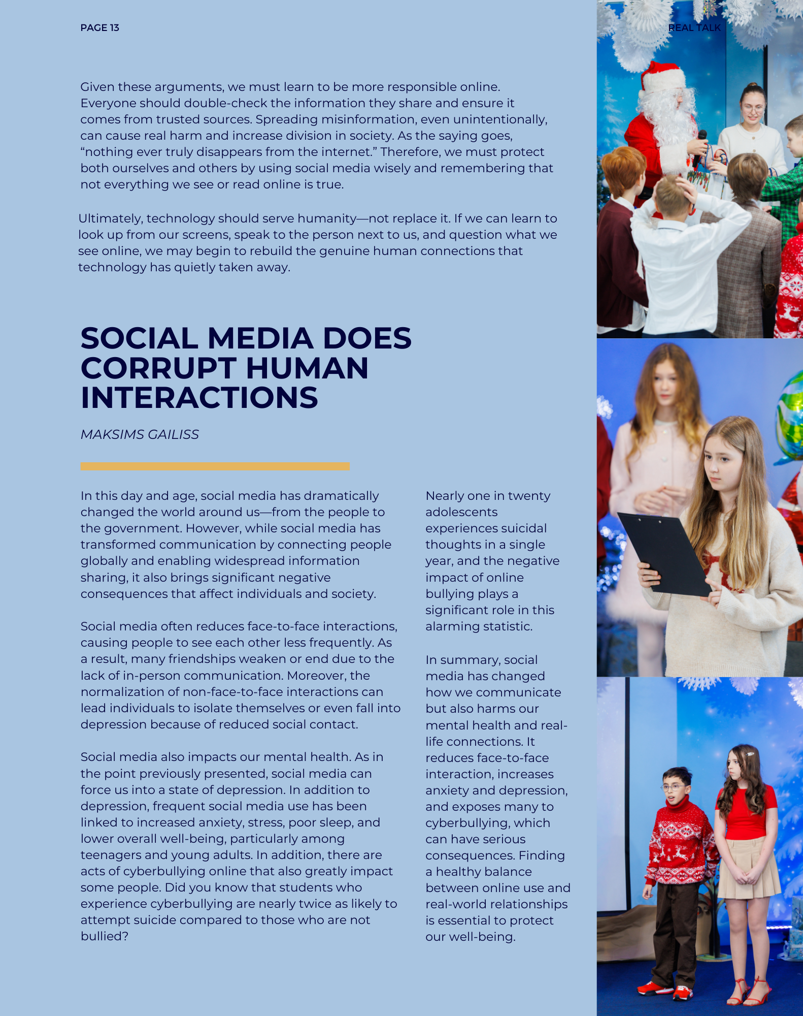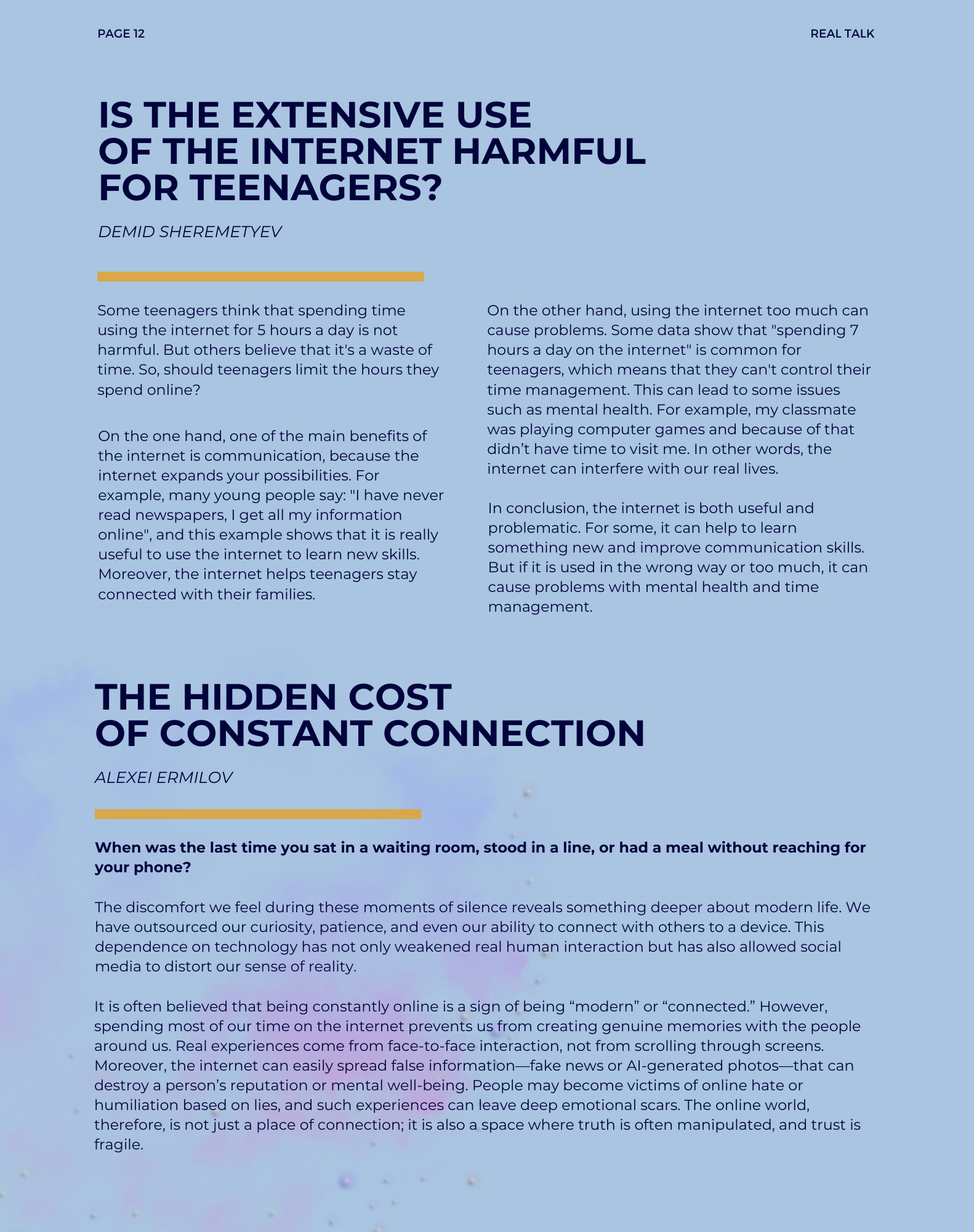 Школьная газета RIS является важной частью образовательной среды. Она даёт ученикам возможность развивать письменную речь, критическое мышление и навыки самостоятельного анализа, а также делиться своим взглядом на мир за пределами учебной программы.
