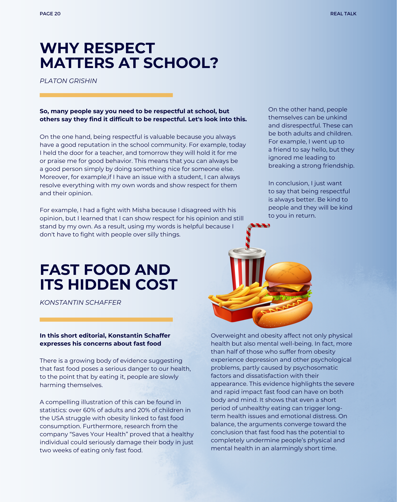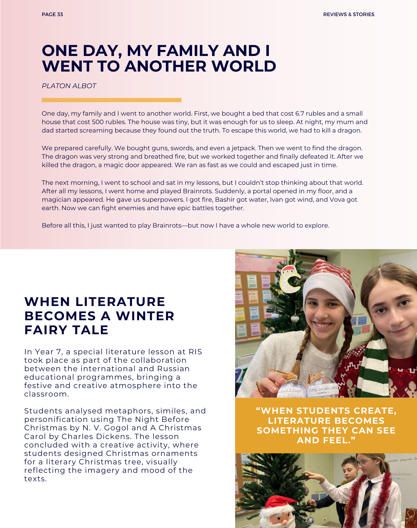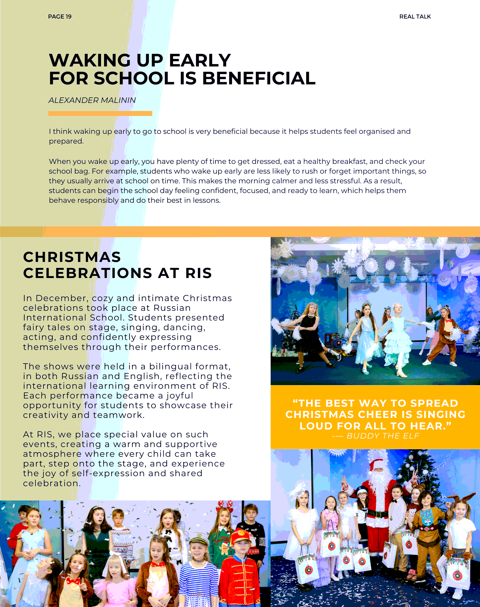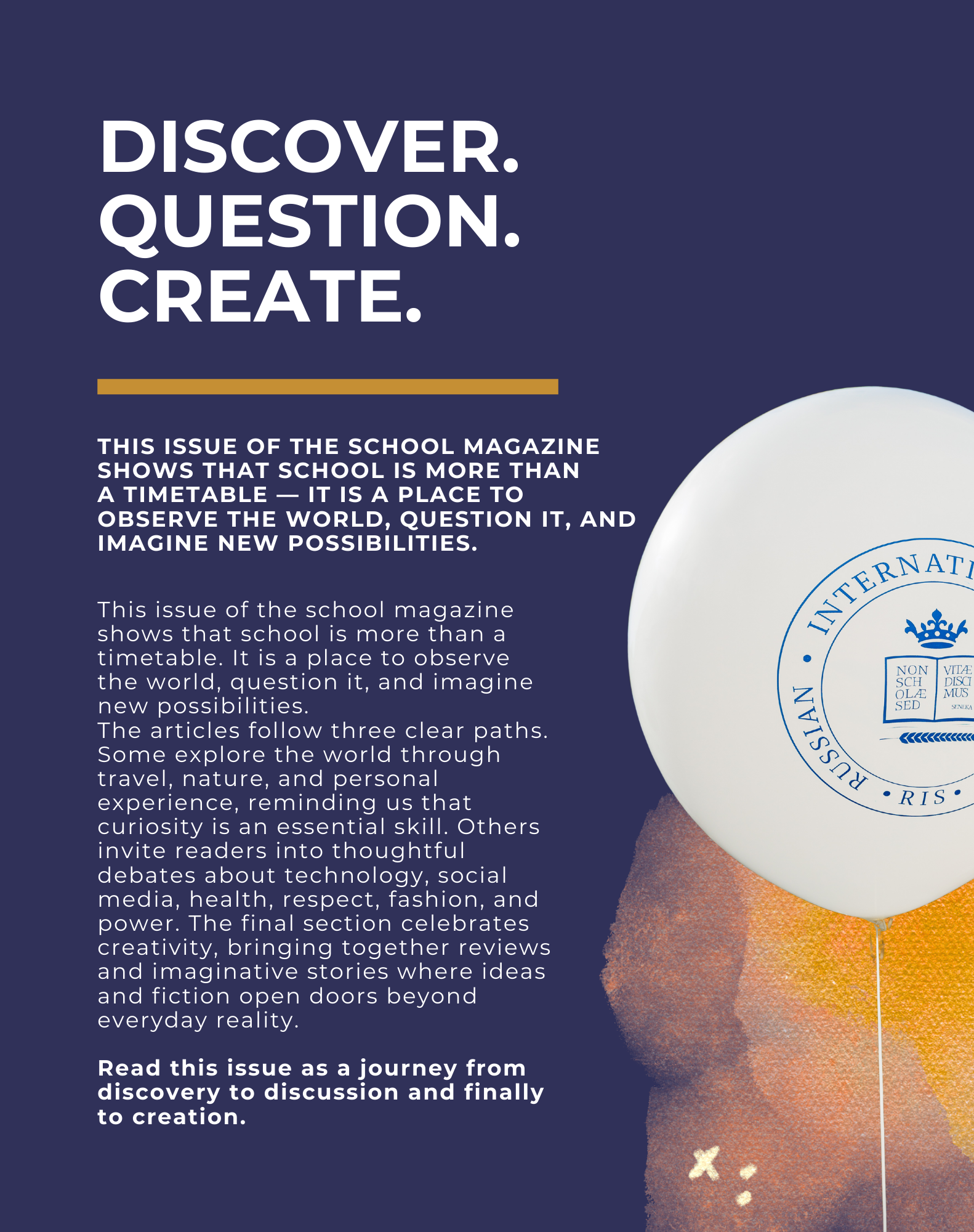 Мы рады представить 19-й выпуск школьной газеты Russian International School — издание, в котором отражаются идеи, размышления и творческие поиски наших учеников.