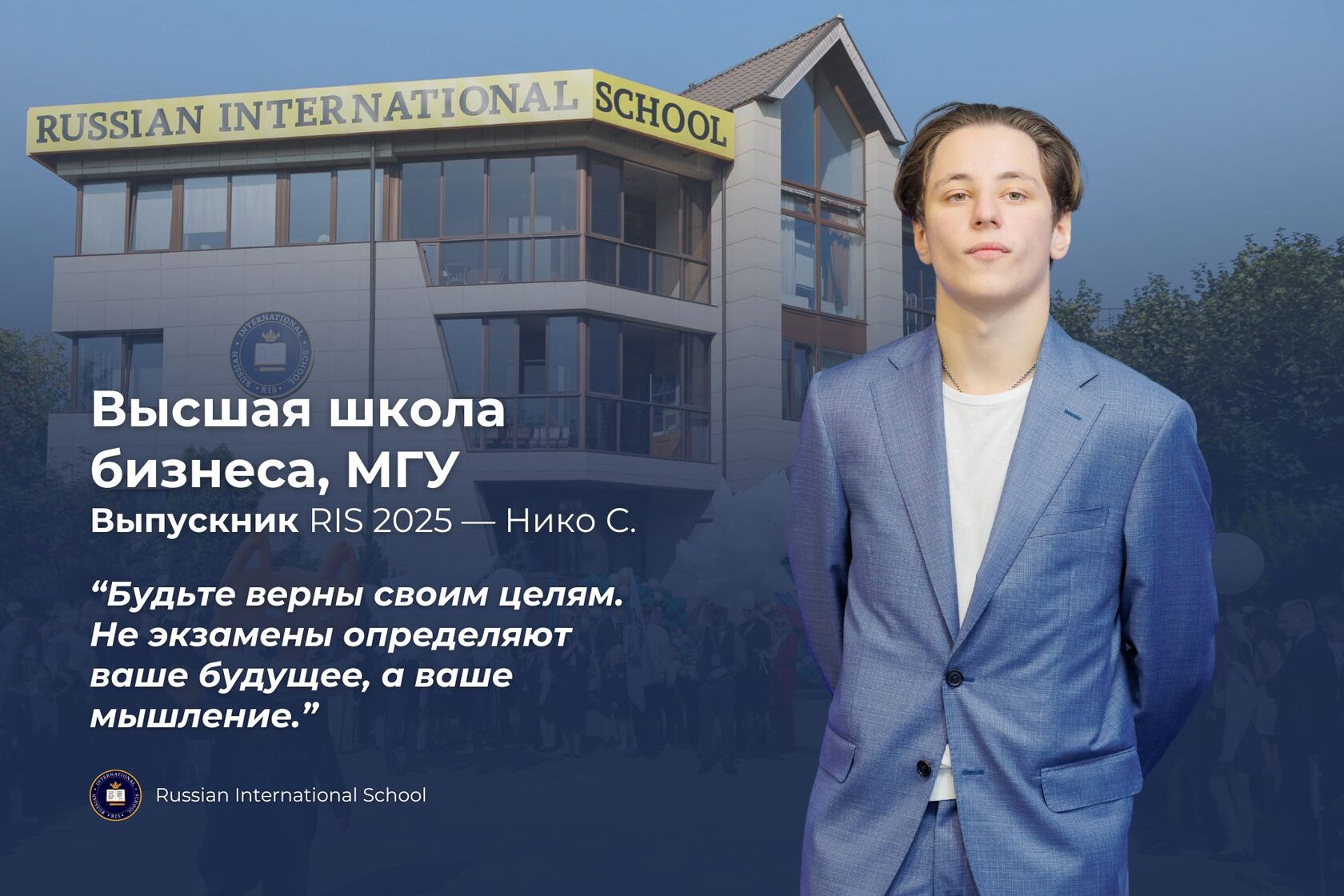 Переход от школы к университету — это не просто смена учебного заведения, а переход в новую интеллектуальную и профессиональную среду. Для Нико С., выпускника RIS 2025 года, этот этап стал логичным продолжением осознанной образовательной траектории. Сегодня он студент Высшей школы бизнеса МГУ имени М.В. Ломоносова и делится размышлениями о выборе направления, университетской системе и тех навыках, которые действительно имеют значение.